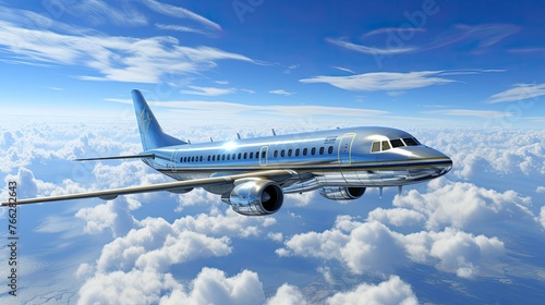 © Volodymyr Skurtul, Fototapeta premium Private jet flying above the clouds