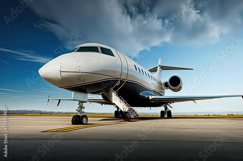 Obraz premium Private Jet on Airport Runway: Ready to Board!. Photo generative AI