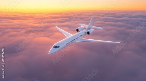 © afridwi, Fototapeta premium Private Jet Soaring Above Sunset Clouds: A Luxurious Aerial View