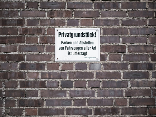 © deemoovee, Fototapeta premium Private Property Sign On A Brick Wall