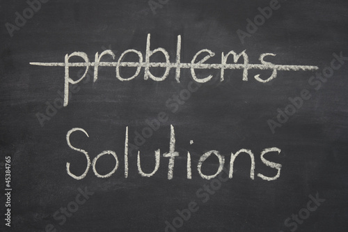 © taonga, Obraz premium problems crossed out and solutions written underneath on a black