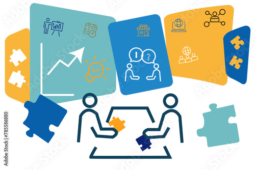 © Vector Elements, Obraz premium Problems solving and finding solutions. People holding puzzle elements. Vector illustration.