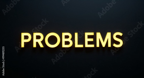 Fototapeta premium problems word lettering with yellow glow on plain black dark background
