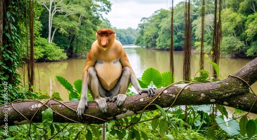 © Kewellnguyen90, Fototapeta premium Proboscis Monkey by River