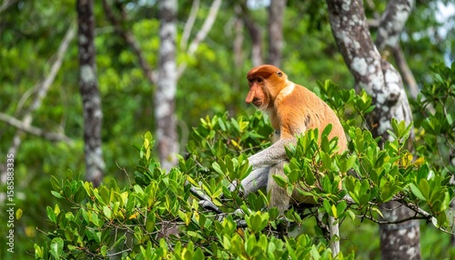 © Abdul, Fototapeta premium Proboscis Monkey in Lush Green Jungle