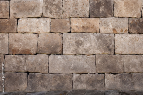 © Larysa, Fototapeta premium Processed collage of ancient yellow block wall texture. Background for banner, backdrop or texture