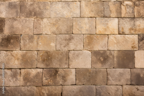 © Larysa, Obraz premium Processed collage of ancient yellow block wall texture. Background for banner, backdrop or texture