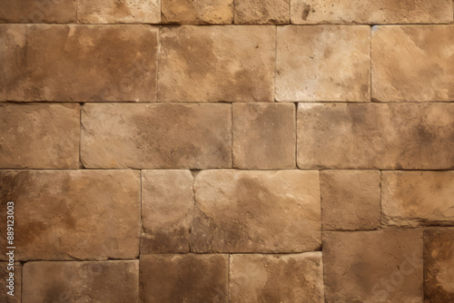 © Larysa, Obraz premium Processed collage of ancient yellow block wall texture. Background for banner, backdrop or texture