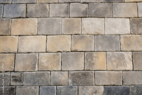 © Larysa, Fototapeta premium Processed collage of ancient yellow block wall texture. Background for banner, backdrop or texture