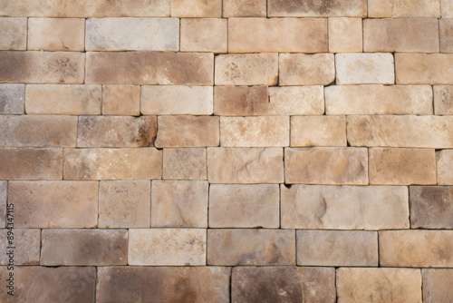© Larysa, Fototapeta premium Processed collage of ancient yellow block wall texture. Background for banner, backdrop or texture