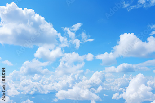 © Larysa, Fototapeta premium Processed collage of cloudy light blue sky texture. Background for banner, backdrop or texture