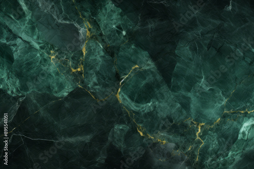 © Larysa, Obraz premium Processed collage of luxurious dark green glossy marble texture. Background for banner