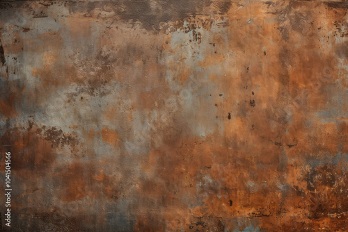 © Larysa, Fototapeta premium Processed collage of orange rust metal surface texture. Background for banner, backdrop or texture