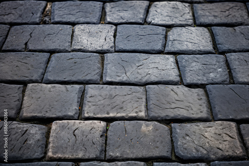 © Larysa, Fototapeta premium Processed collage of pavement cobble stones surface texture. Background for banner, backdrop