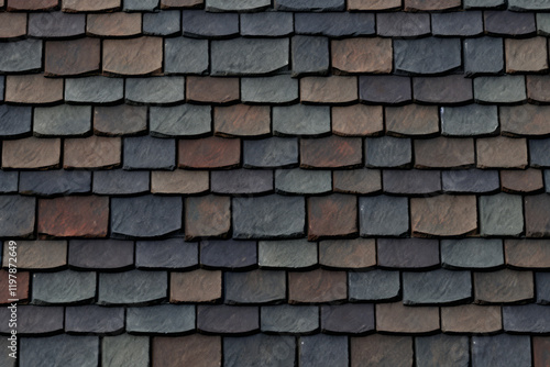 © Larysa, Obraz premium Processed collage of slate roof tiles surface texture. Background for banner, backdrop or texture