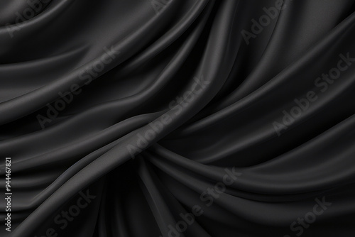 © Larysa, Fototapeta premium Processed collage of smooth elegant wavy deep black silk cloth fabric material texture. Background