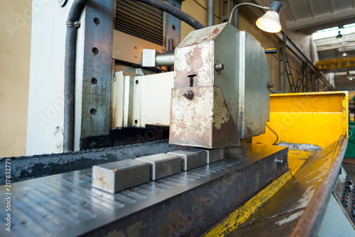 © andov, Obraz premium Processing of rectangular parts on a flat grinding machine, wide-angle photo.