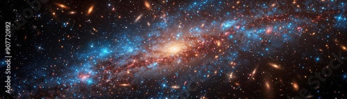 Fototapeta premium Produce a radiant galaxy scene with varying redshift among galaxies, top...