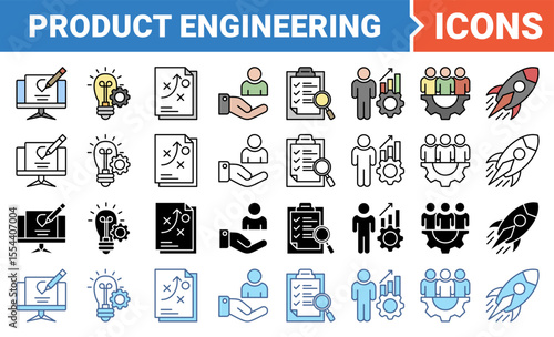 © benerbaner, Obraz premium Product engineering icon set with multiple style collection.