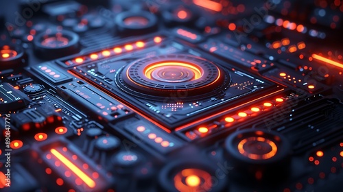 © Muhammad, Fototapeta premium Product launch invitation with an open area and writing space available on the left side The card features innovative and futuristic design elements highlighting the introduction of a new product
