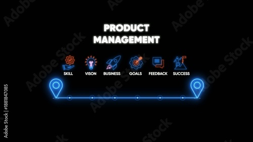Fototapeta premium Product management process timeline with skill vision business goals feedback...