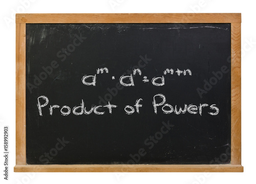 © clsdesign, Obraz premium Product of powers written in white chalk on a black chalkboard isolated on white