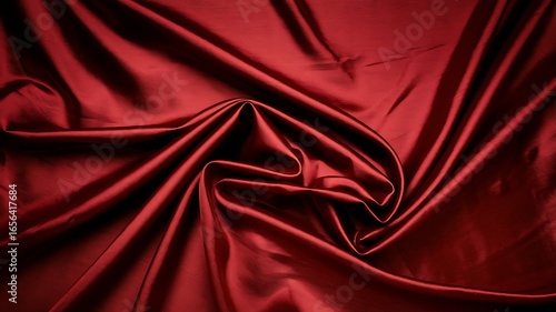 © Din Nasahrudin, Fototapeta premium Product stand covered with red silk fabric. Stage.