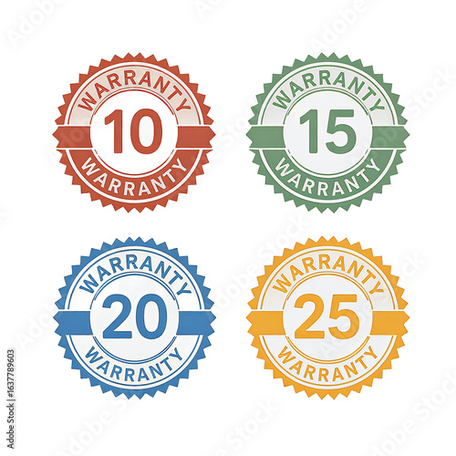 Obraz premium Product Warranty Badges 10, 15, 20, 25 Year Guarantee Seals