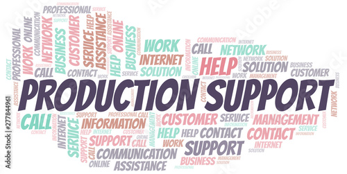 © sharafmaksumov, Obraz premium Production Support word cloud vector made with text only.