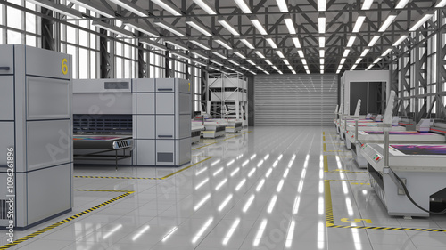 © Wire_man, Obraz premium Production workshop with wide format flatbed UV plotters and printers. 3d illustration
