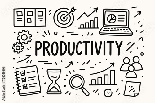 © Hubba Bubba, Naklejka premium Productivity tools outline icon set. efficiency and planning symbols collection