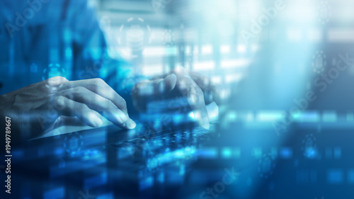 Naklejka premium Professional analyzing big data on digital dashboard interface. Concept of data analytics, database processing, artificial intelligence, financial statistics, and technology-driven business decision.