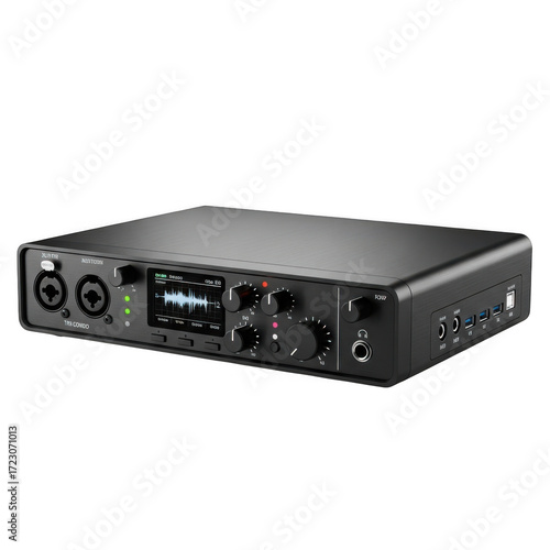 Obraz premium Professional audio interface device with multiple inputs and outputs isolated...