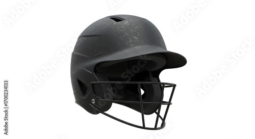 © Alan, Fototapeta premium Professional Black Baseball Batting Helmet with Face Mask for Player Safety and Protection, Isolated on White Background