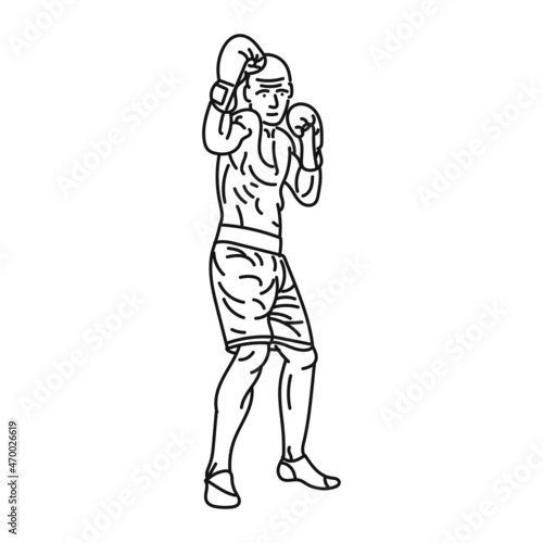 © Hanif Amrullah, Fototapeta premium professional boxer black line illustration