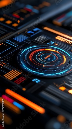 © jitthanant, Obraz premium Professional business diagrams, glowing digital innovation visuals, futuristic setup, 3D illustration