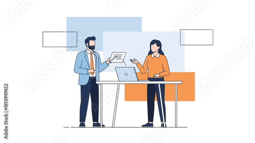 © Jajang, Fototapeta premium professional business meeting between two colleagues in office setting with digital devices and