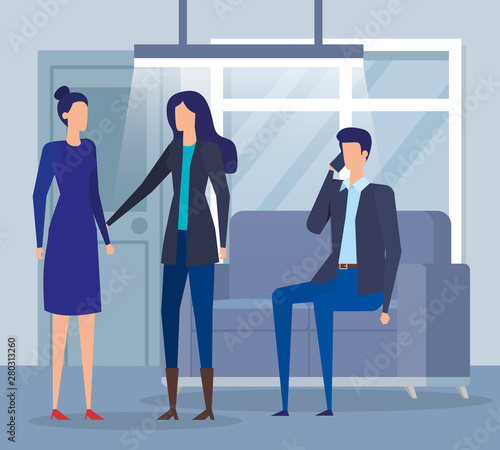 © Gstudio, Obraz premium professional businesswomen and businessman teamwork with smartphone