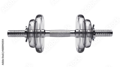 © Naqash, Fototapeta premium Professional chrome dumbbell for intense strength training and fitness routines