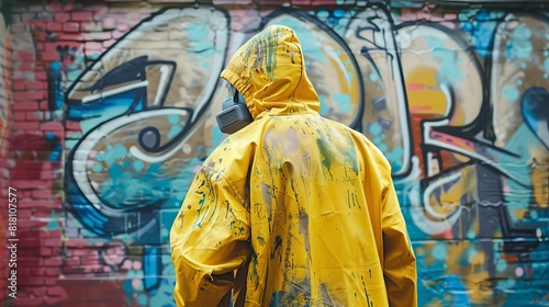 Fototapeta premium professional cleaner removing graffiti from wall digital art