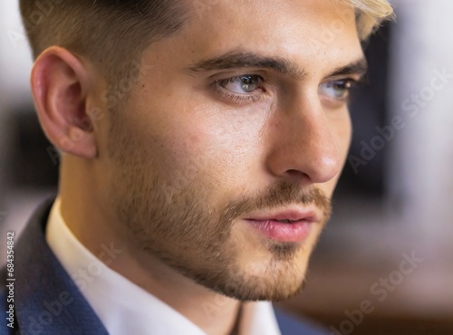 Fototapeta premium Professional confident elegant businessman, executive manager work at office, face expression closeup, successful company business concept