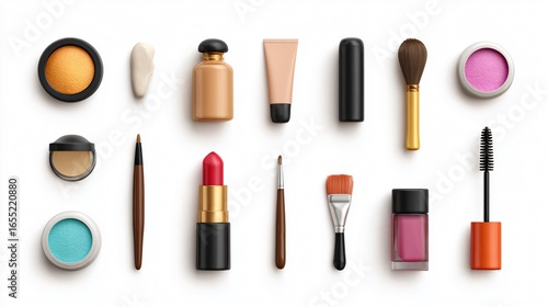 © Farin, Obraz premium Professional Cosmetics 3D Icon Set for Makeup Tools with Powder Cream