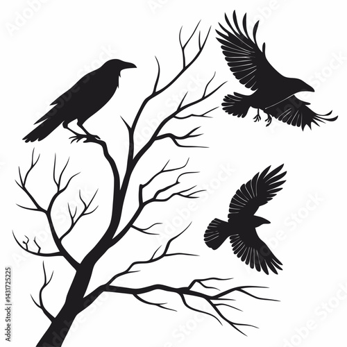 © Mohamed, Obraz premium Professional Crow Silhouettes: Winter Tree.