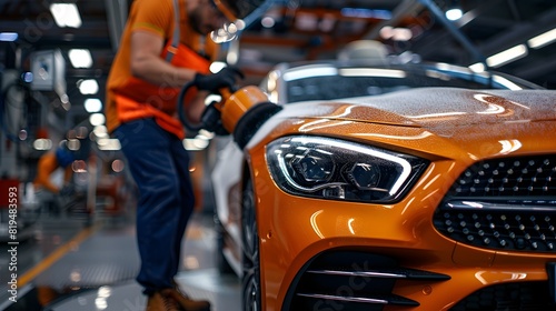 Fototapeta premium Professional Detailer Polishing Automobile with Premium Shine and Smooth Finish