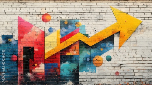 Fototapeta premium Professional Development Mural on White Brick Wall with Upward Arrow and...