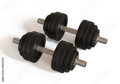 Fototapeta premium Professional dumbbell for fitness and bodybuilding isolated on white background, 3d illustration.