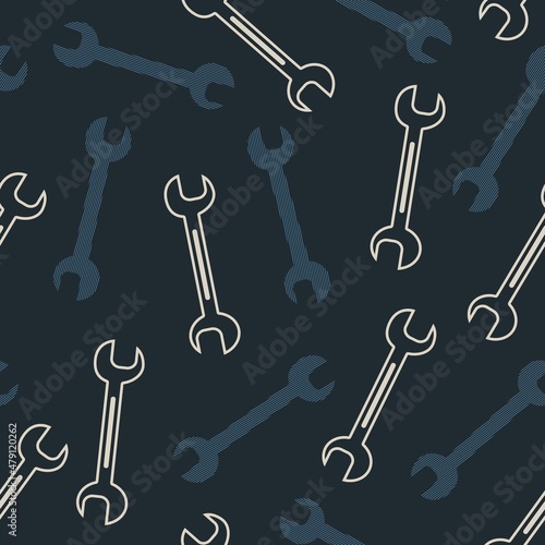 © F-lin, Naklejka premium Professional Fixing with Open End Wrench Tools Vector Graphic Seamless Pattern