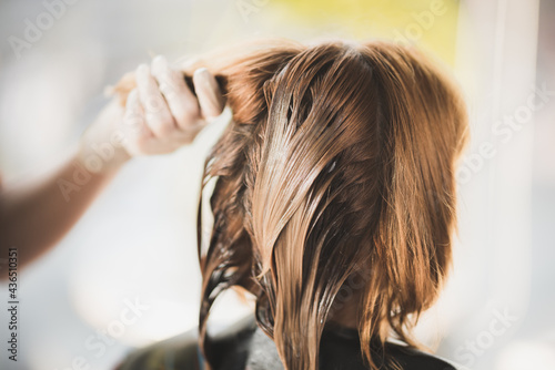 Obraz premium professional hairdresser stylist person and hair fashion beauty salon...