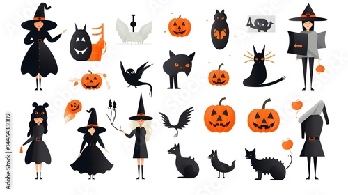 © Mortin, Naklejka premium Professional Halloween Fashion Flat Icons for Festive Designs on Isolated White Background