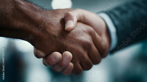 Fototapeta premium Professional handshake between diverse hands symbolizing a successful business agreement and strong partnership